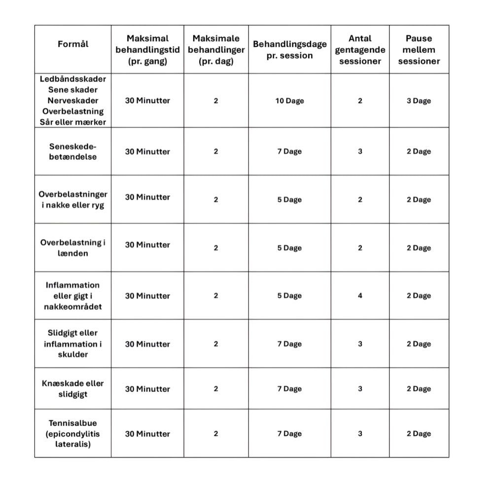 Vi anbefaler at behandle ét område ad gangen, så du effektivt kan målrette terapien mod specifikke smertepunkter, muskelspændinger eller skader. Denne fokuserede tilgang sikrer en dybere og mere effektiv behandling, hvor det infrarøde lys trænger optimalt ind i vævet.